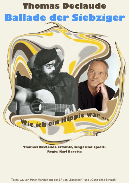 Spielt, singt, erzählt über seine "ver-rückten" Jahre in den legendären 70ern..... seine Reisen als Straßensänger, die Kommunenabenteuer, die Indienfahrten. Über die Sehnsucht der „Blumenkinder“ und die „freie Liebe“ - das kommunale politische demonstrative Verhalten etc.