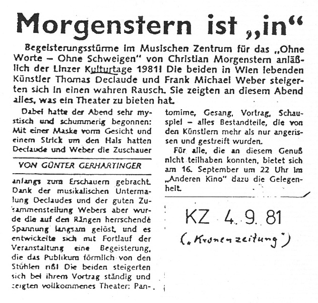 Ein Christian Morgenstern Projekt in Zusammenarbeit mit Frank Michael Weber