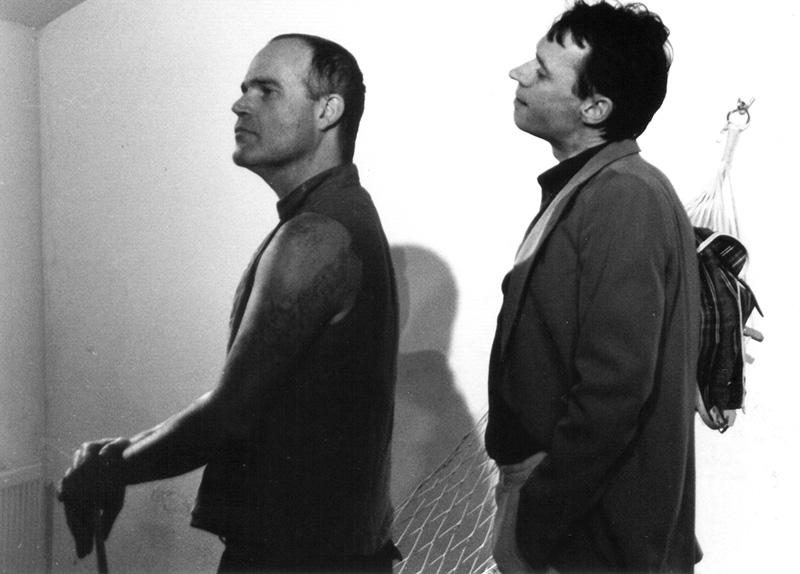 Grotesk und aber-witzig erscheinen: der Knielose, der Schwebende zwischen Leben und Tod, der Narr, der Liebende in Hoffnung und Ent-Zweiung, der Träumer und Entflammte, und der Nieder-Geschlagene. Der Galgenbruder....und letztlich der Mensch auf der "Bühne Welt", der spielt, dass er sich selber spielt....